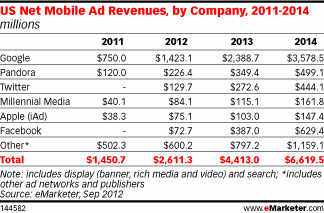 Based on the report, Google will rake in about $1.4 billion in mobile ad revenues in 2012, which is more than 50% of the total generated in the United States, $2.6 billion.